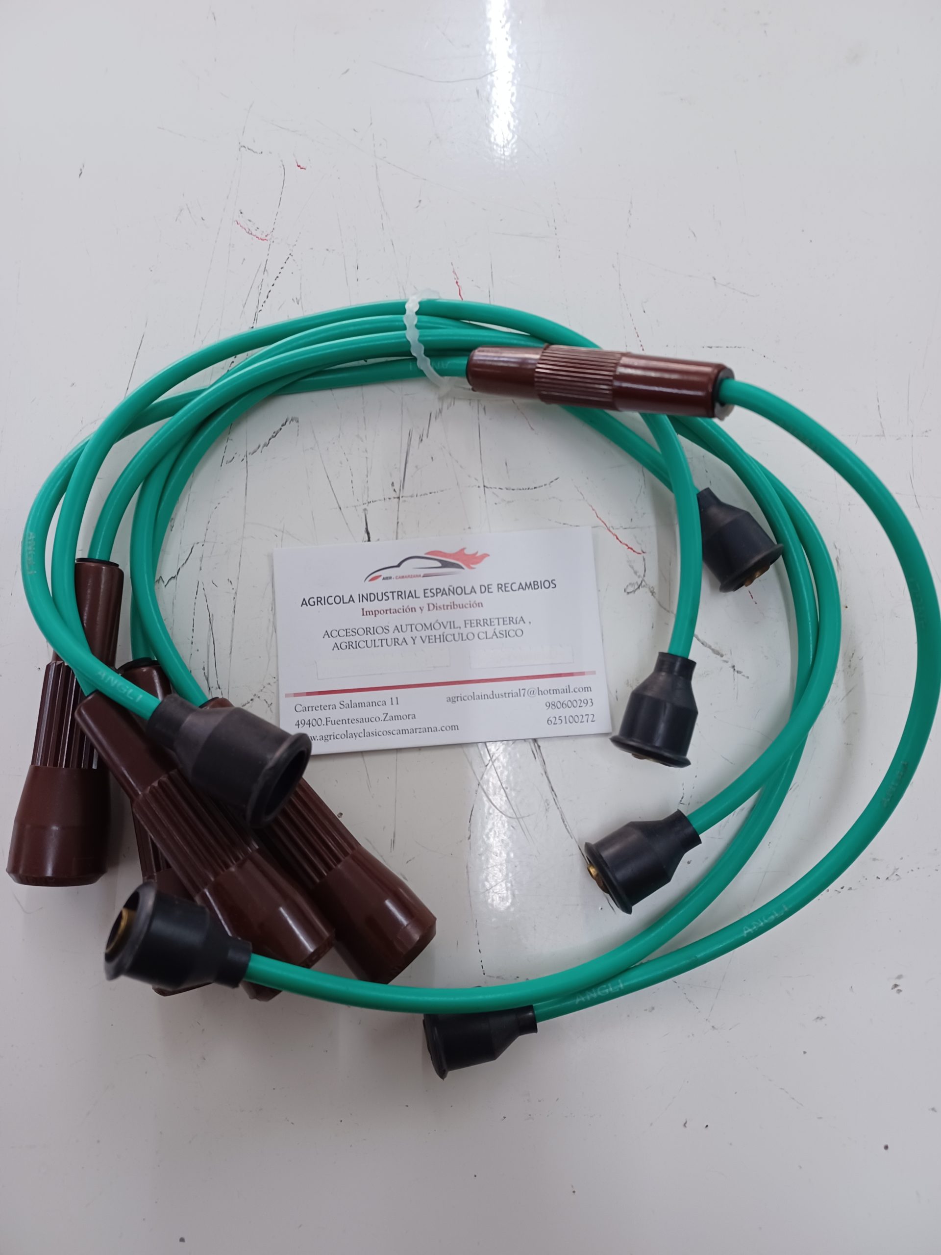 Juego cables de bujías nuevas de viejo stock ( cable verde ), para los modelos de Seat 131, Seat 1430